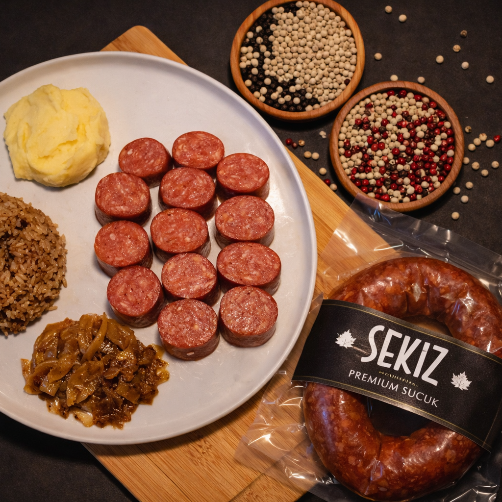 Sekiz Dana Sucuk, kendi çiftliğimizden gelen dana etlerinin özenle seçilmesiyle hazırlanır. Geleneksel yöntemlerle harmanlanan özel...