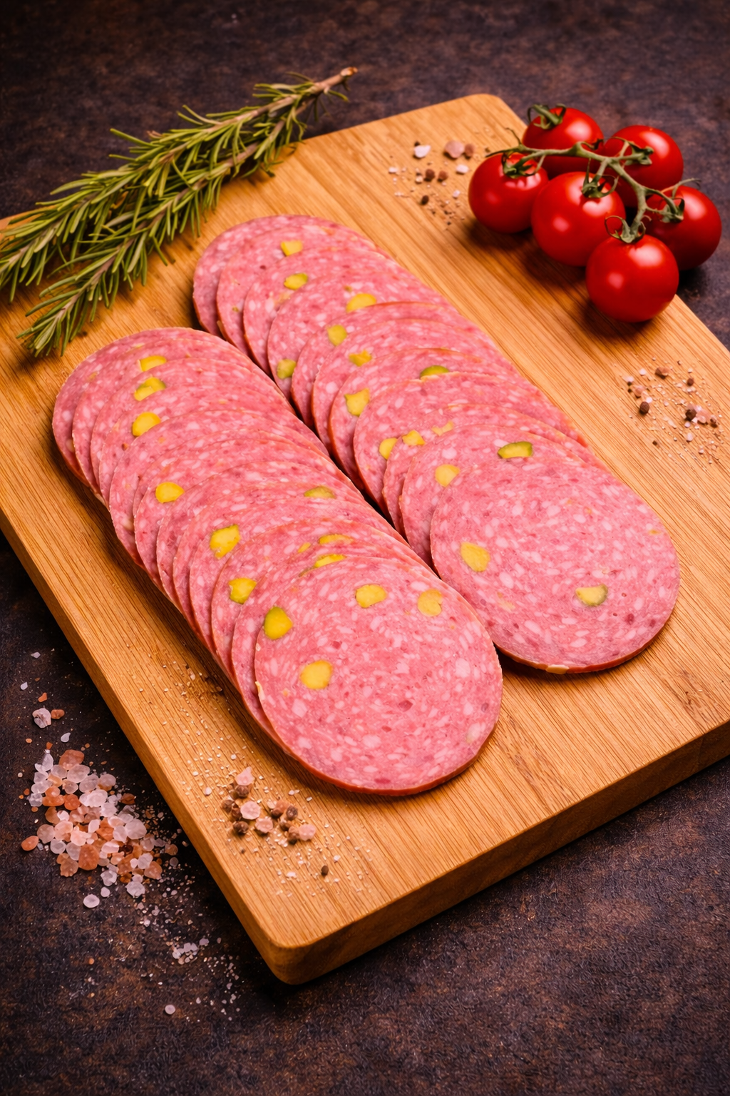 Özenle seçilmiş dana eti, geleneksel Macar salam reçetesi ve iri Antep fıstığı parçalarıyla hazırlanan Fıstıklı...