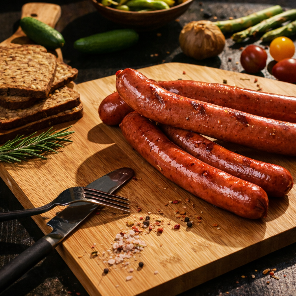 Özenle seçilmiş dana etiyle hazırlanan Frankfurter Sosisimiz, yumuşak dokusu ve dengeli baharat profiliyle klasik Alman...